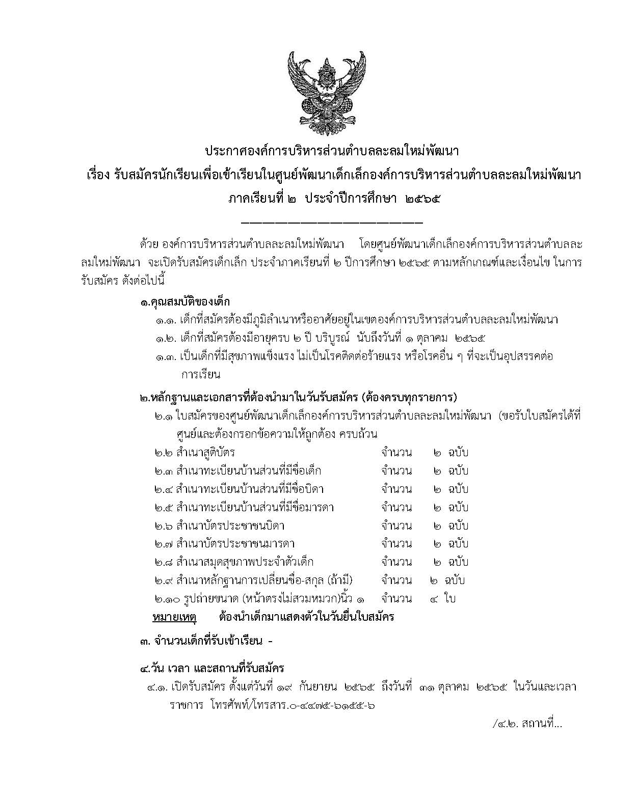 ประชาสัมพันธ์เปิดรับสมัตรเด็กเล็กเข้าเรียนในศูนย์พัฒนาเด็กเล็กองค์การบริหารส่วนตำบลละลมใหม่พัฒนา |